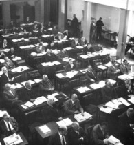 Über Jahrzehnte spielte die Theatergruppe des ABV im „großen Saal“ des „Eduard-Pfeiffer-Hauses“. Da Stuttgart im Zweiten Weltkrieg zu mehr als 80 Prozent zerstört wurde, hatte der Landtag keine Bleibe mehr. Der „große Saal“ des „Eduard-Pfeiffer-Hauses“ in der Heusteigstraße 45 blieb von den Bomben verschont, und im Sommer 1947 zog der Landtag in die Räumlichkeiten. Bis 1961 diente der ehemalige, große Theatersaal des ABV als provisorischer Plenarsaal für den württembergisch-badischen und später für den baden-württembergischen Landtag. Das Haus sah richtungsweisende Entscheidungen wie die Annahme des Grundgesetzes 1949, den Vollzug der Vereinigung der Südwestländer und die Verabschiedung der Landesverfassung 1953.